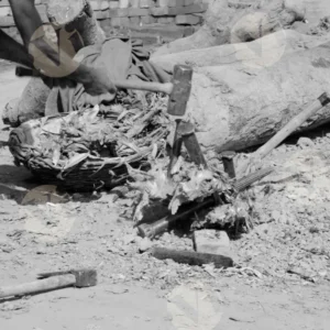 The man is using an axe to chop a Wood – Log, The man is using an axe to chop and B&W