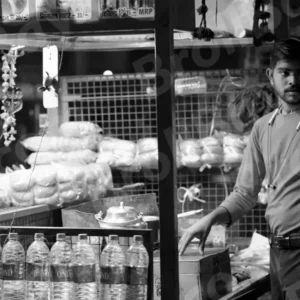 A Street Food Vendor in Kolkata Preparing Food – Log, colour and B&W