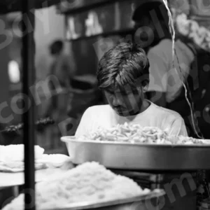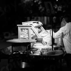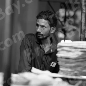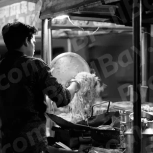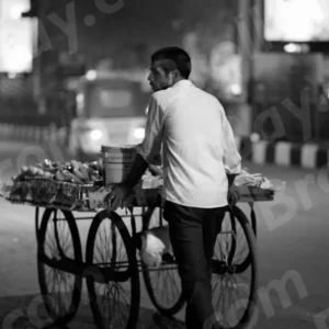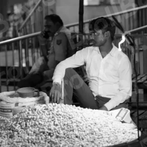 Man Selling Namkeen Snacks – Log, colour and B&W