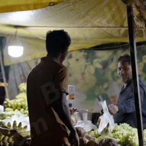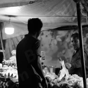 Man Selling Vegitables in a Stall – Log, colour and B&W