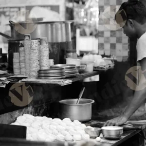 Cook Making Chowmin – Log, colour and B&W