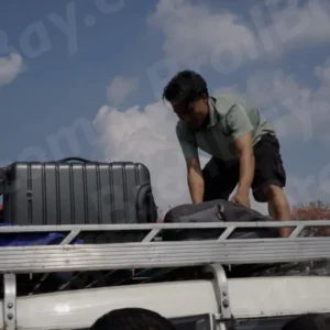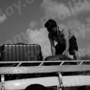 Man Putting Luggage on Top of a Car – Log, colour and B&W