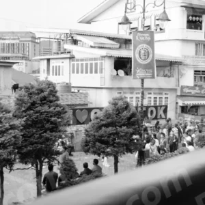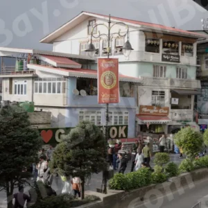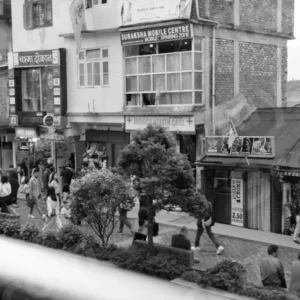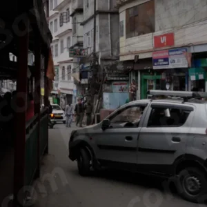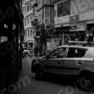 Cars Passing on Thin Market Road in Gangtok – Log, colour and B&W