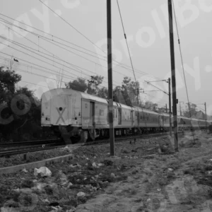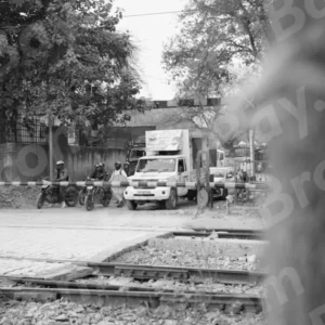 Vehicles are Stopped at the Railway Crossing – Log, colour and B&W