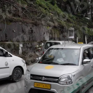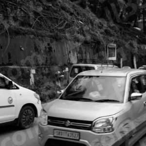 Cars Passing on Thin Market Road in Gangtok – Log, colour and B&W