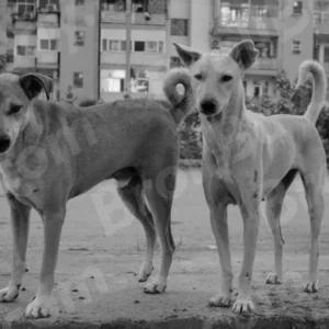 Dog’s are Eating Food on a Street – Log, colour and B&W