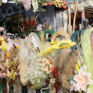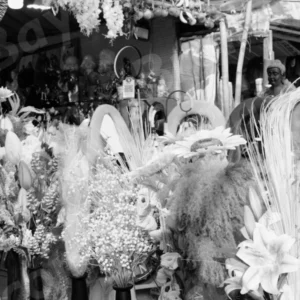 Arranging a garland of marigold flowers – Log, colour and B&W