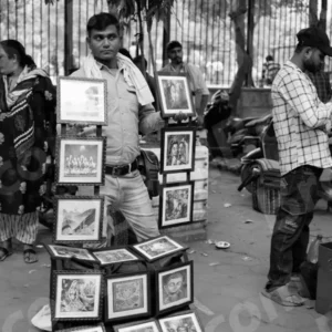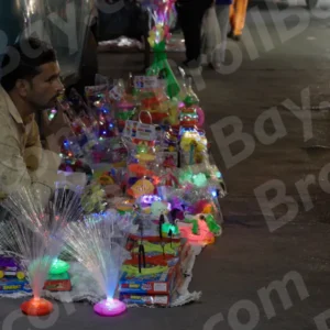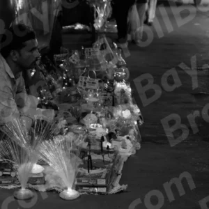 Man Selling Toys and Plying With Her Kid – Log, colour and B&W