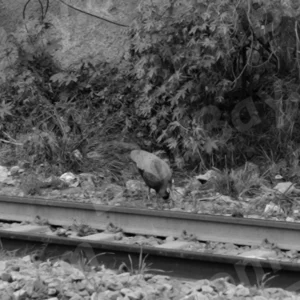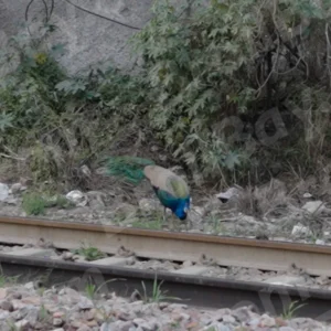 Peacock Crossing a Railway Track – Log, colour and B&W
