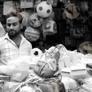 A Seller Selling Religious Items in Haridwar – Log, colour and B&W