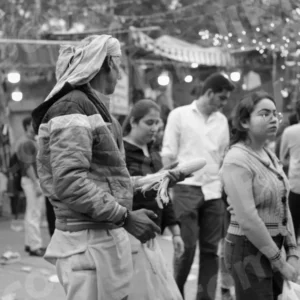 Woman Selling Stoles and Scarves – Log, colour and B&W