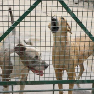 Dogs in a Shelter – Log, colour and B&W