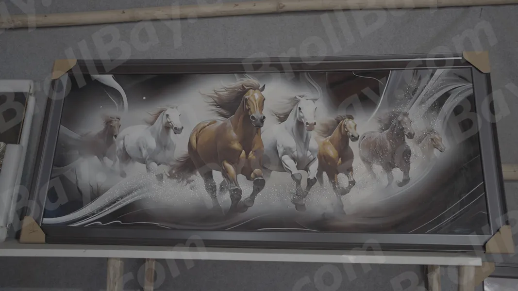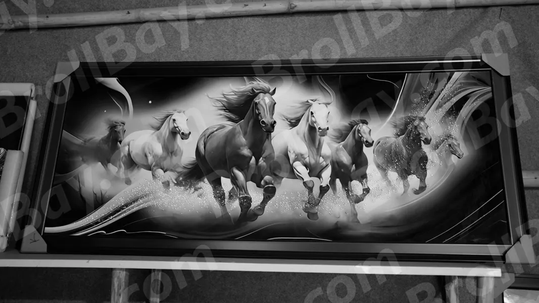Print Depicting Seven Running Horses – Log, colour and B&W