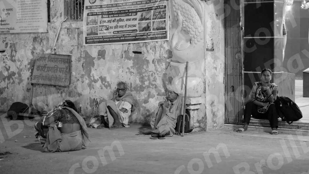 Poor People are Sitting Outside the Temple – Log, colour and B&W
