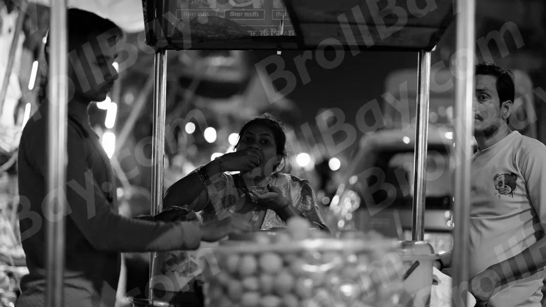 Women Eating Paani Puri (Water Ball ) Log, colour and B&W