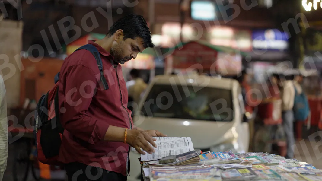 Man Reading Books in a Book Stall – Log, colour and B&W