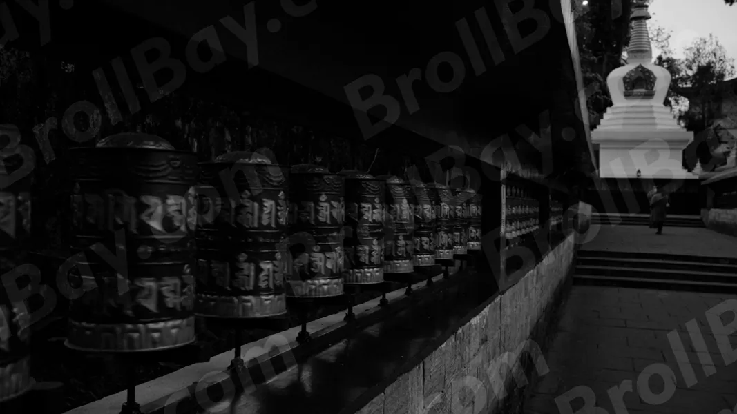 Tibetan Prayer Wheels -Log, colour and B&W