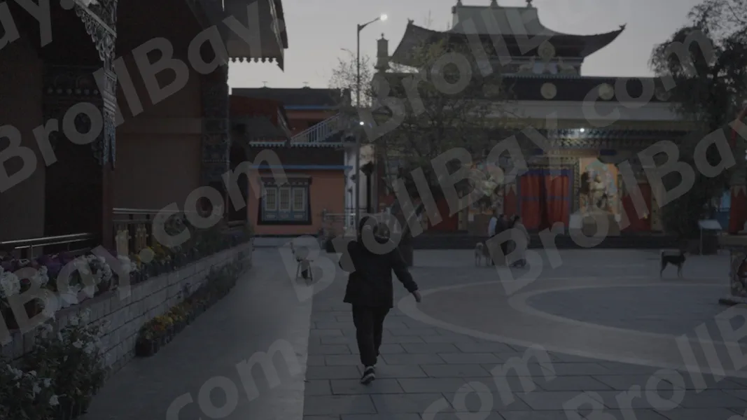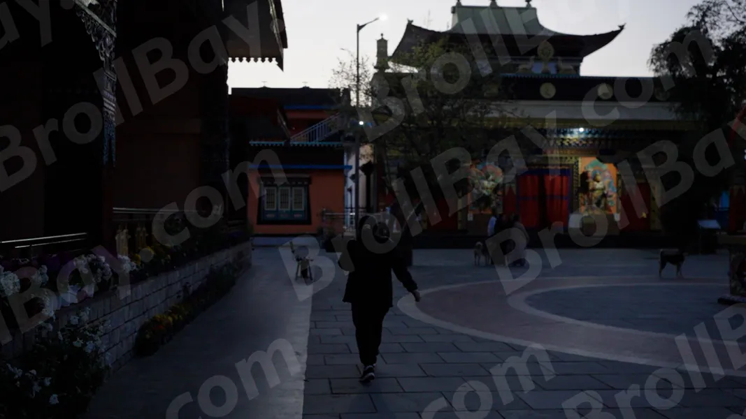 Woman Walking Inside Monastery – Log, colour and B&W