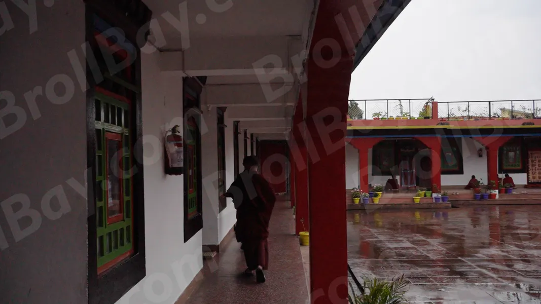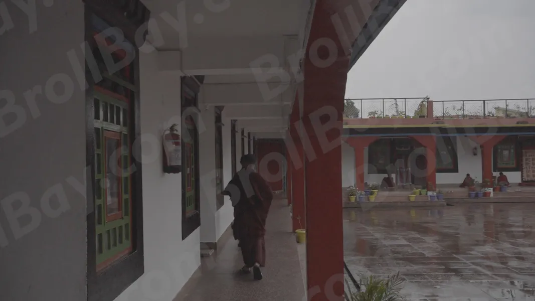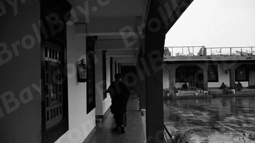 Monk are Walking on Dharma Chakra Centre – Log, colour and B&W