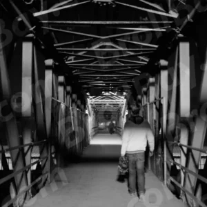 A Man Walking on Foot Overbridge – Log, colour and B&W