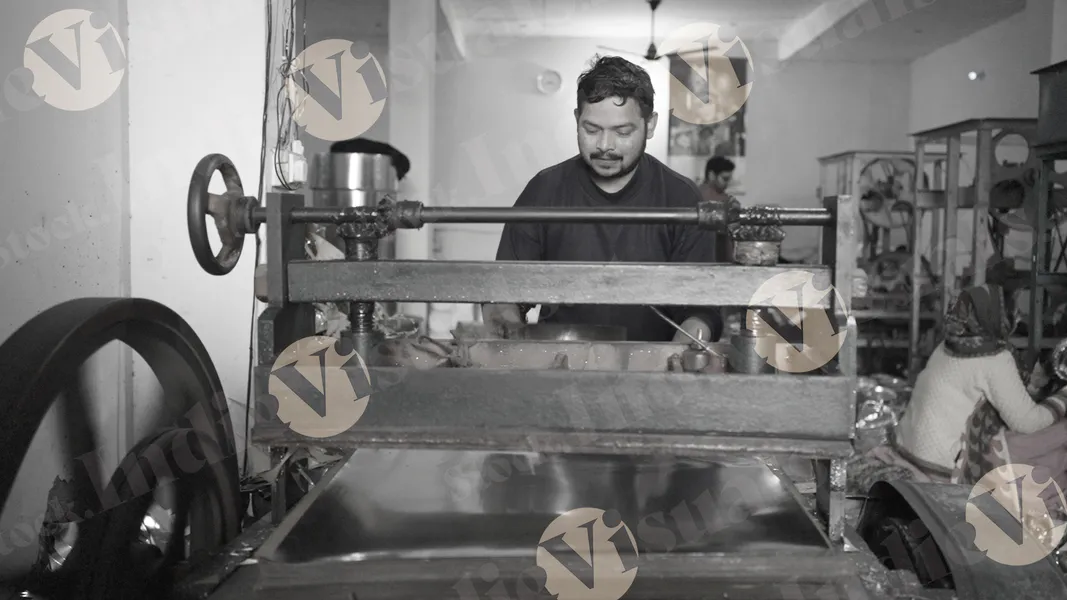 Person use machine to Cutting Paper Plates – Log, colour and B&W