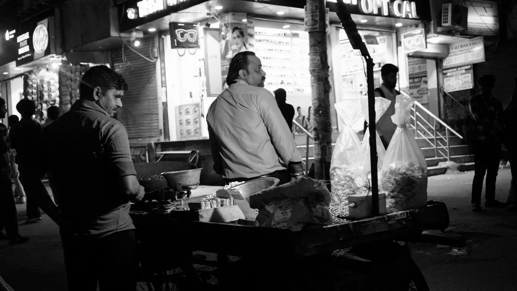 Man Selling Snacks on a Stall – Log, colour and B&W